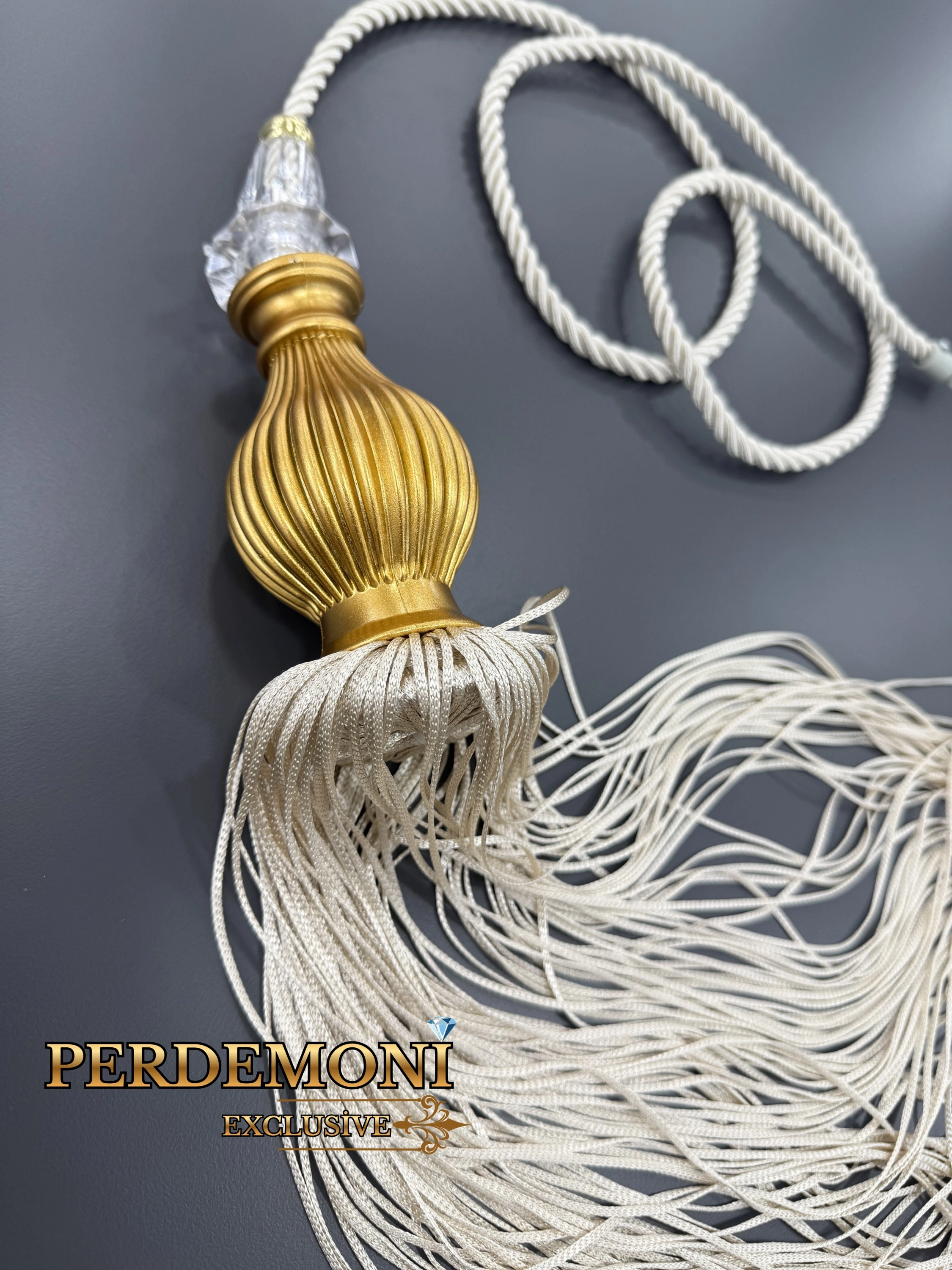 Bej Rengi Gold Kuka Püsküllü Elmaslı Sarkıt