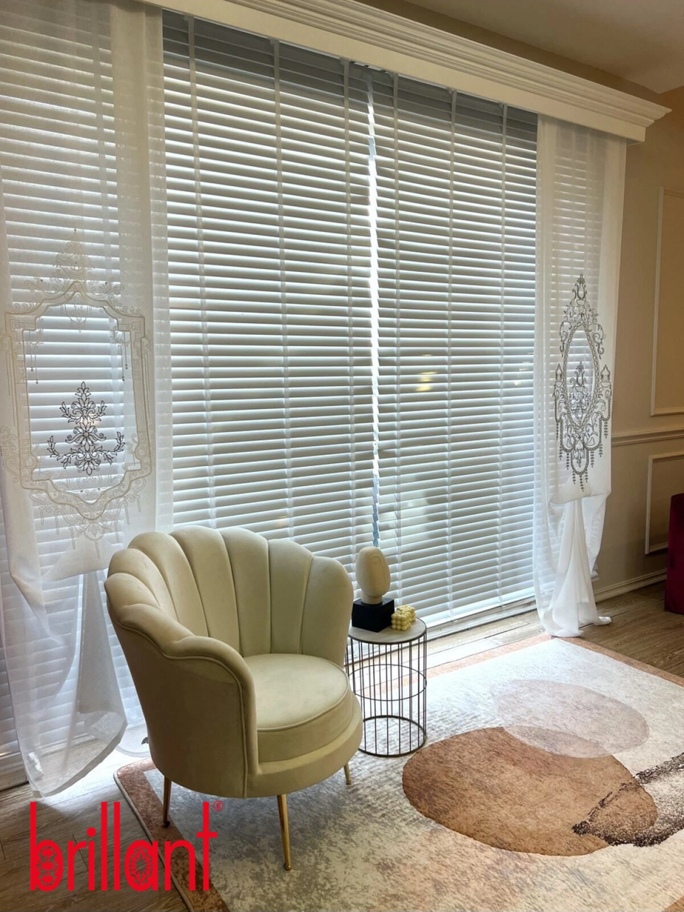 Kaliteli malzeme yapısıyla öne çıkan Brillant jaluzi perde, uzun ömürlü kullanım sunarken estetik görünümünden ödün vermez. Ayarlanabilir lamel sistemi sayesinde gün ışığını istediğiniz açıyla yönlendirebilir, hem mahremiyet hem de konfor elde edebilirsiniz.