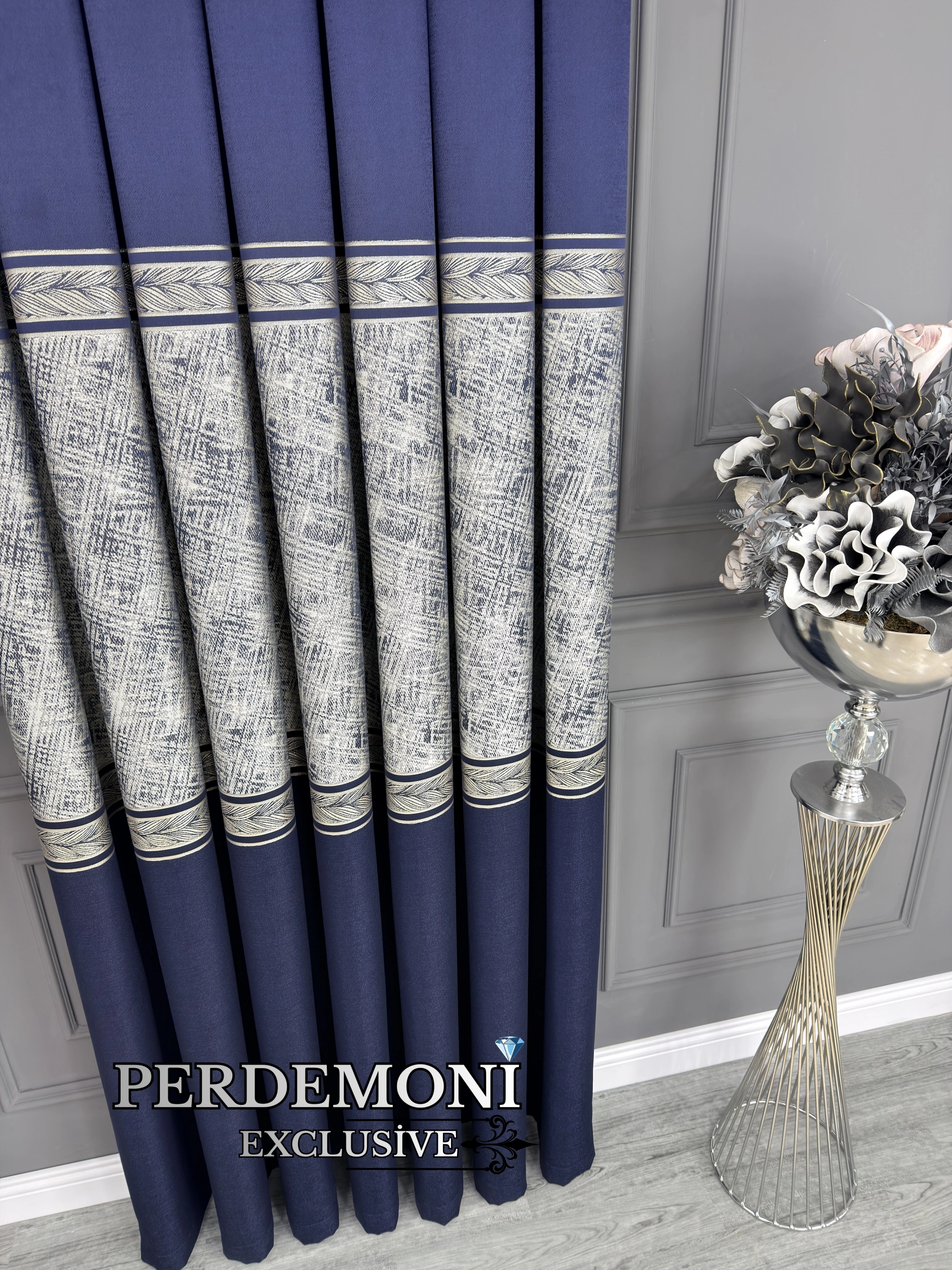 Ev dekorasyonunuza zarif bir dokunuş eklemek için Hermes Desen Pano Fon Perde Yeni Sezon Lacivert mükemmel bir tercihtir.