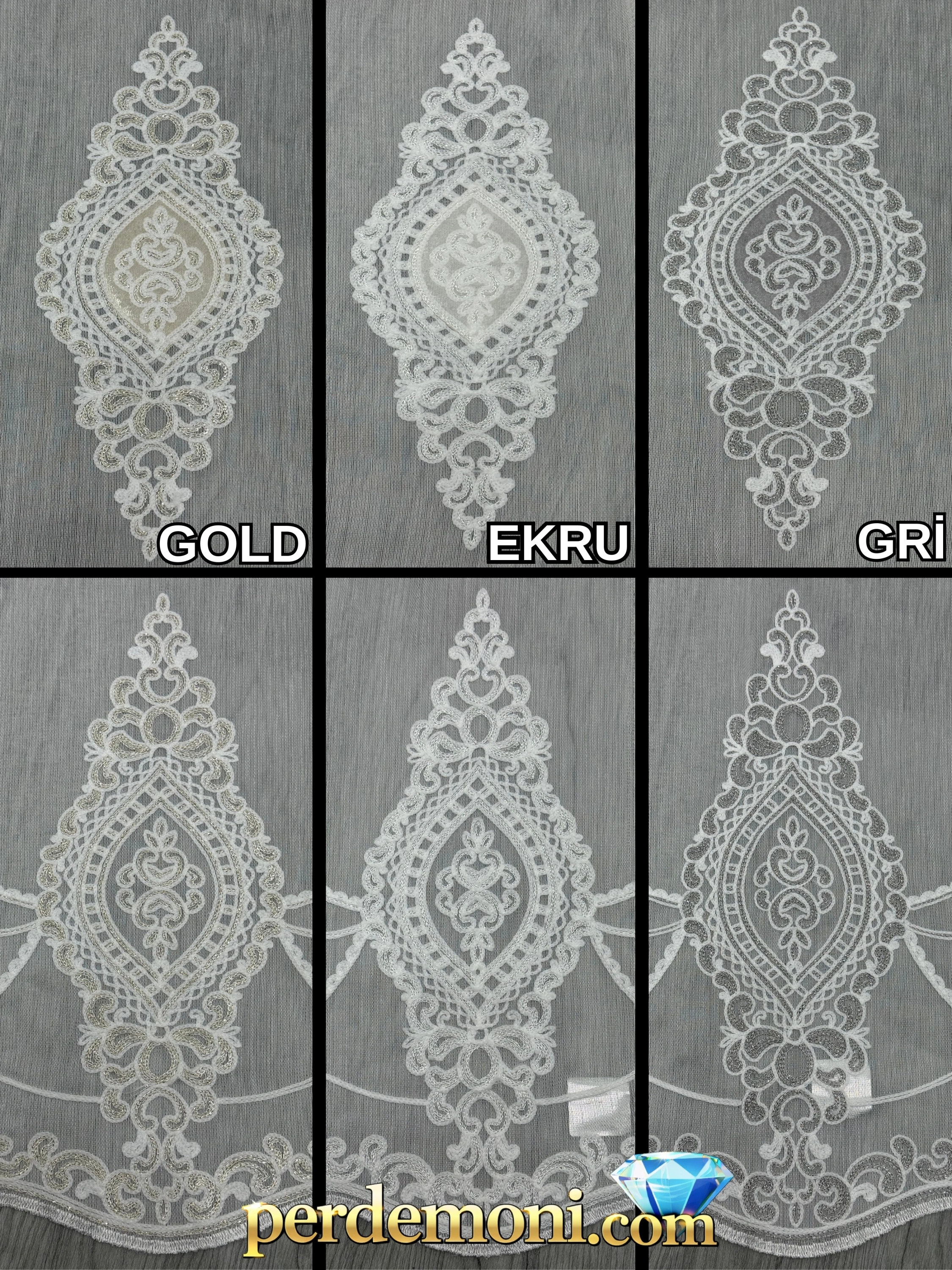Lotus Desen Bambu Zemin Ekru Nakışlı Tül Perde