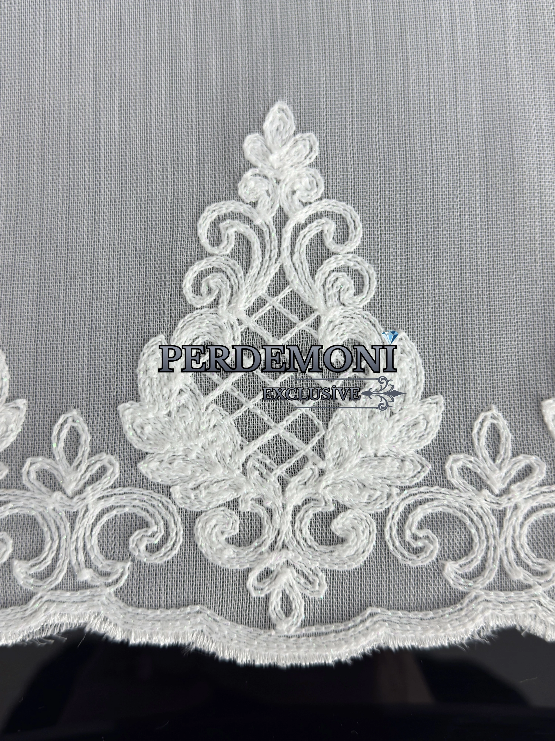 Süzene Etek Nakışlı Bodrum Desen Bambu Zemin Tül Perde