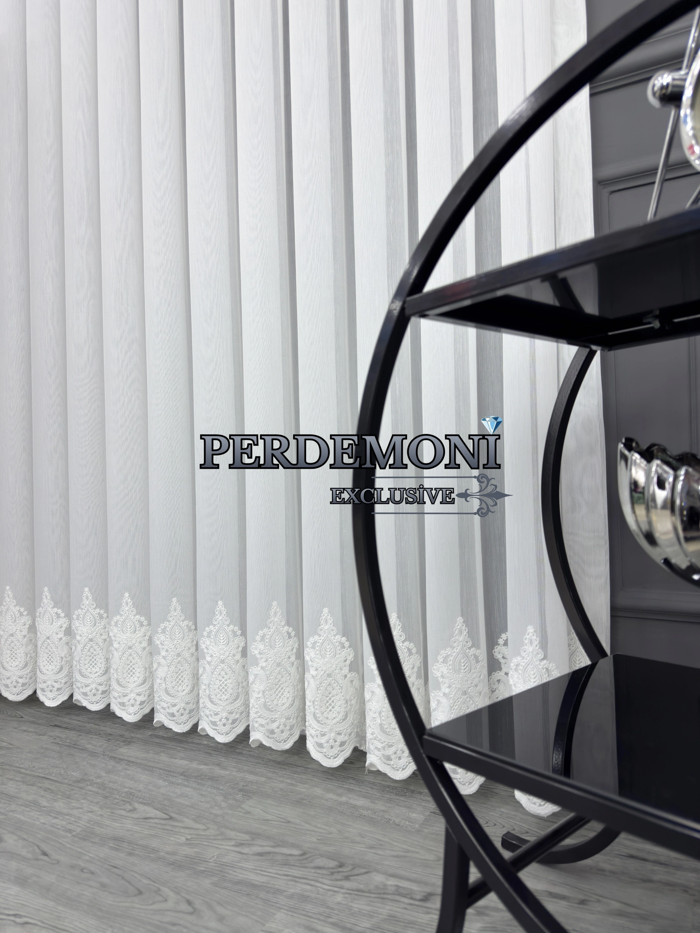 Süzene Etek Nakışlı İkra Desen Bambu Zemin Tül Perde